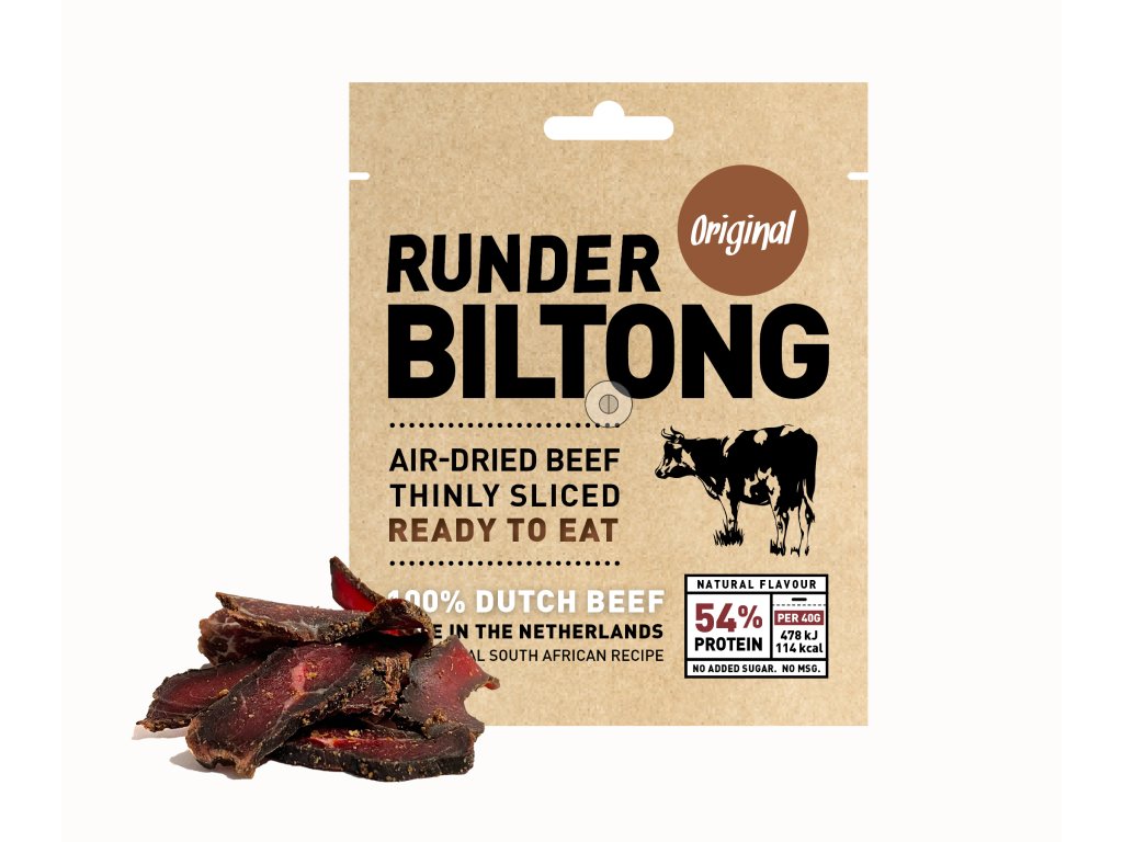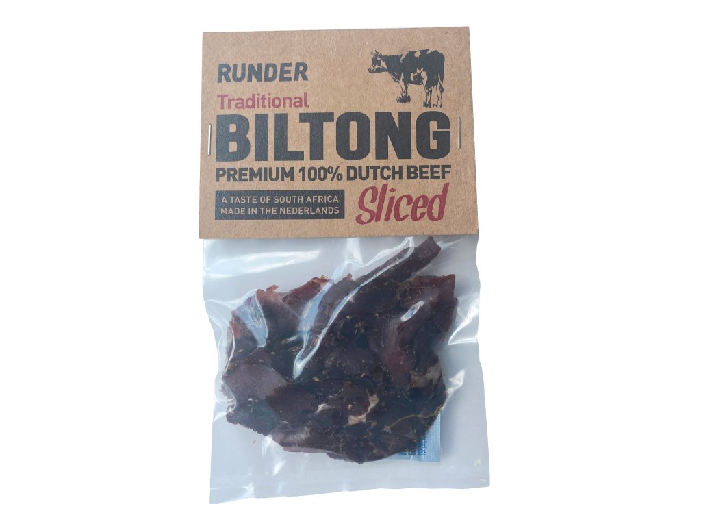 Chutí a jemností Runder Biltong nejvíce přípomíná maso od Telcka. Holanďani na přípravu používaj jenom to nejkvalitnější hovězí maso z místních chovů. Nenajdete v něm žádný éčka. Trvanlivost je kolem 2 měsíců.. Výrobce doporučuje skladovat v chladu a suchu mimo sluneční záření a teplo.